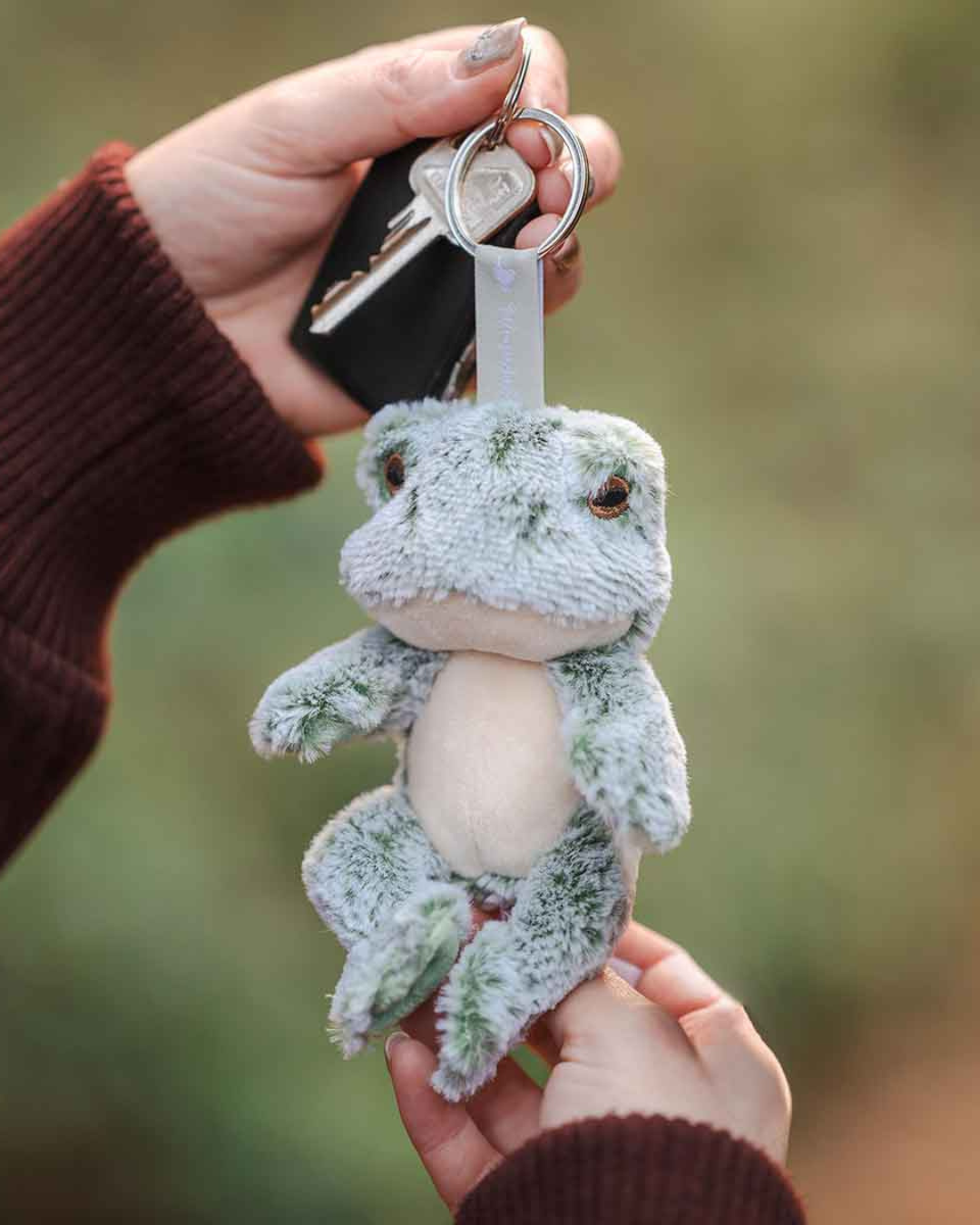 Der super weiche Frosch Schlüsselanhänger wird für Kinder ab 3 Jahren und älter empfohlen. Die Augen sind kindersicher angenäht.
