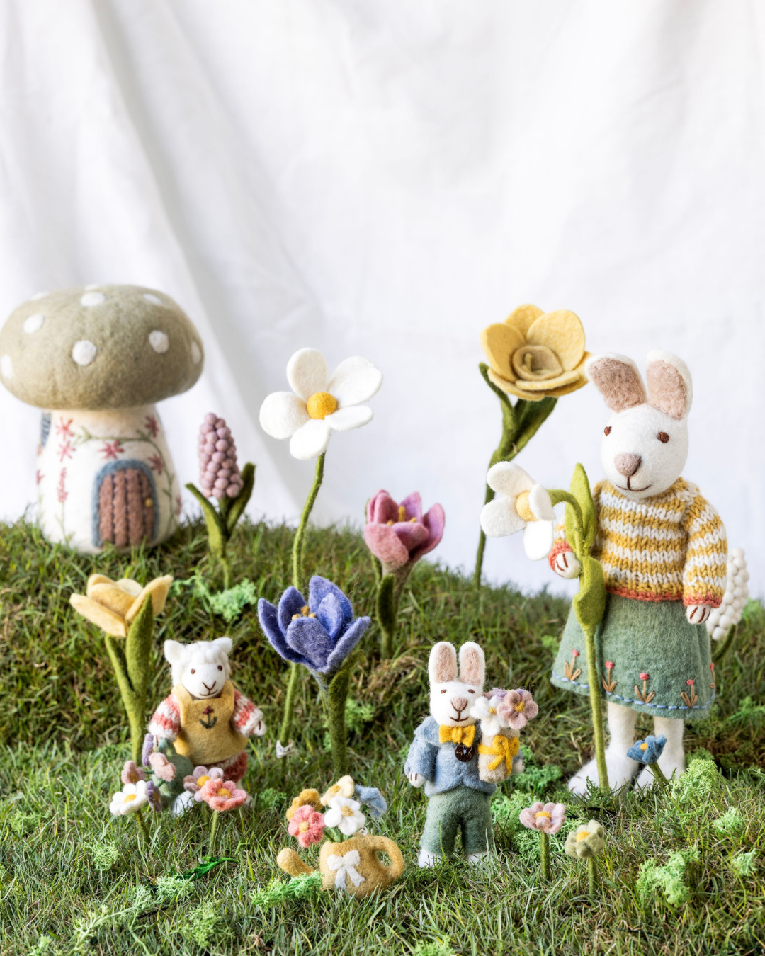 Diese liebevoll gestalteten Hasen mit Blumen als Filzanhänger von Gry & Sif bringen frühlingshafte Leichtigkeit und eine sanfte Märchenstimmung in dein Zuhause. Die kleinen Hasen tragen gestrickte oder gefilzte Kleidung und halten Blumen oder Sträuße in den Pfoten – jedes Detail ist von Hand gearbeitet und verleiht den Figuren ihren ganz eigenen Charakter. Ob am Osterstrauch, an Zweigen in einer Vase oder als verspielter Akzent auf Kommoden und Regalen: Diese Filzanhänger erzählen kleine Frühlingsgeschichten und lassen deine Dekoration lebendig wirken.