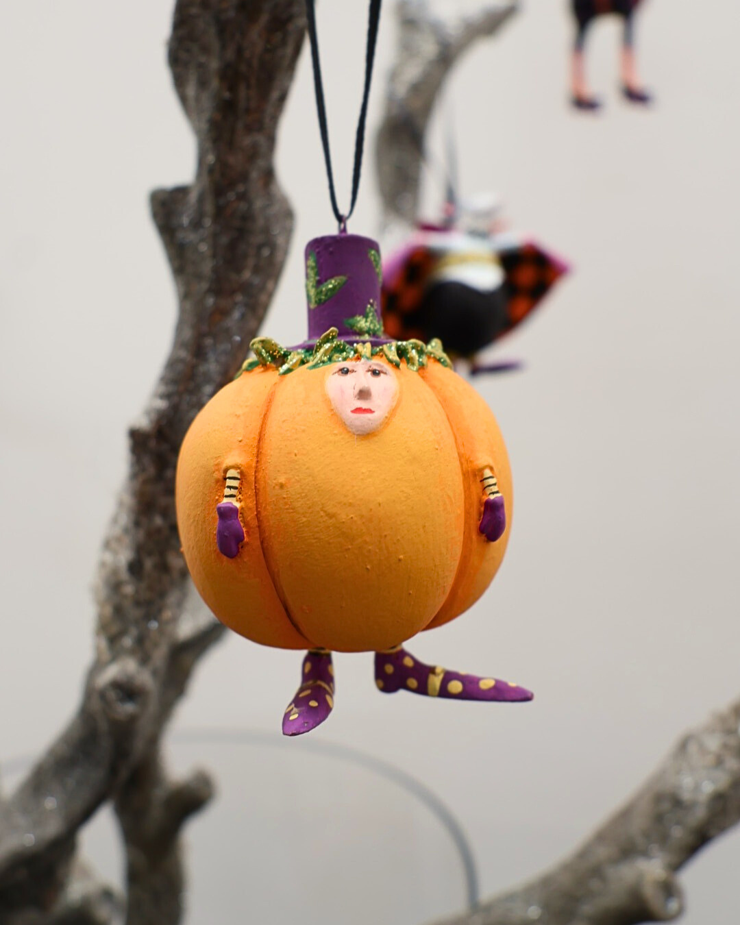 An einem Ast hängender Kürbis Krinkle Mini Gourdon von Patience Brewster.