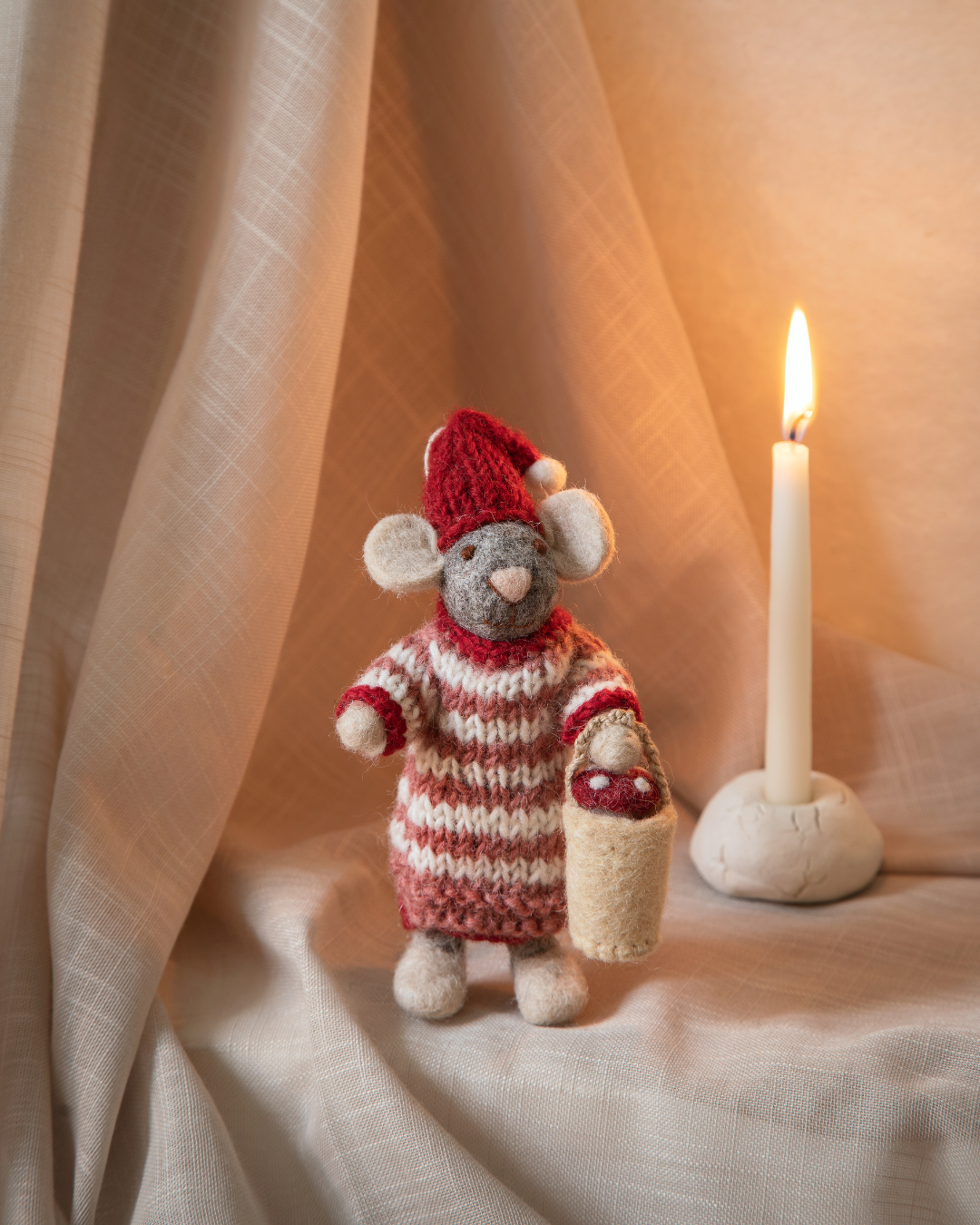 Bestelle jetzt die Pilzsammler Mäuse von Gry & Sif und verleihe deiner Deko eine handgefertigte, nordische Note.