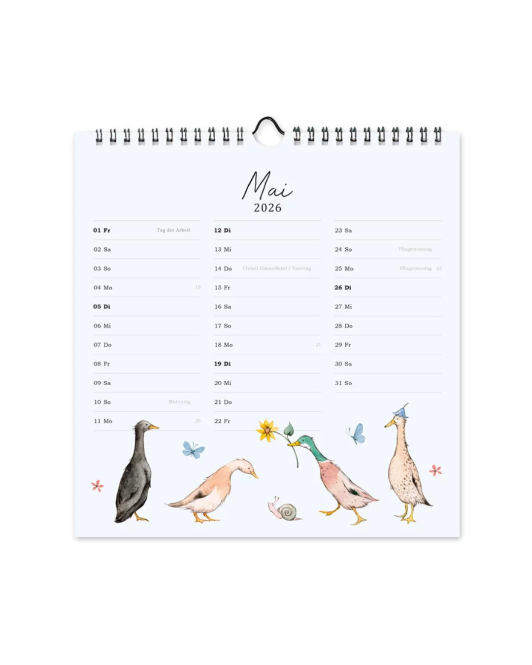 Der Wandkalender „Hühner Naturliebe“ 2026 vom Grätz Verlag ist ein liebevoll gestalteter Begleiter für alle, die das Landleben schätzen. Monat für Monat zeigt er stimmungsvolle Illustrationen rund um Hühner, Natur & Gartenidylle – mit charmanten Details, die jedes Motiv besonders machen. Die Spiralbindung sorgt dafür, dass sich die Seiten leicht umblättern lassen und der Kalender flach an der Wand anliegt. Ein dekorativer Blickfang für Küche, Flur oder Büro, der das ganze Jahr über Freude bereitet.