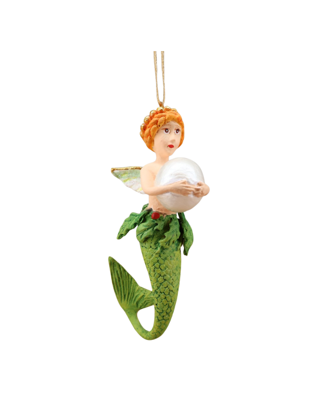 Diese zauberhafte Mini Pearl Mermaid Girl von Patience Brewster bringt eine märchenhafte Leichtigkeit in deine Weihnachtsdekoration. Mit ihrer schimmernden Perle, dem detailreichen grünen Fischschwanz und den zarten Flügeln wirkt sie wie eine kleine Hüterin des Lichts. Die warmen Farben und das liebevoll modellierte Gesicht machen sie zu einem besonderen Blickfang am Baum. Ein Ornament, das Fantasie weckt und jeden Festmoment ein Stück magischer wirken lässt.