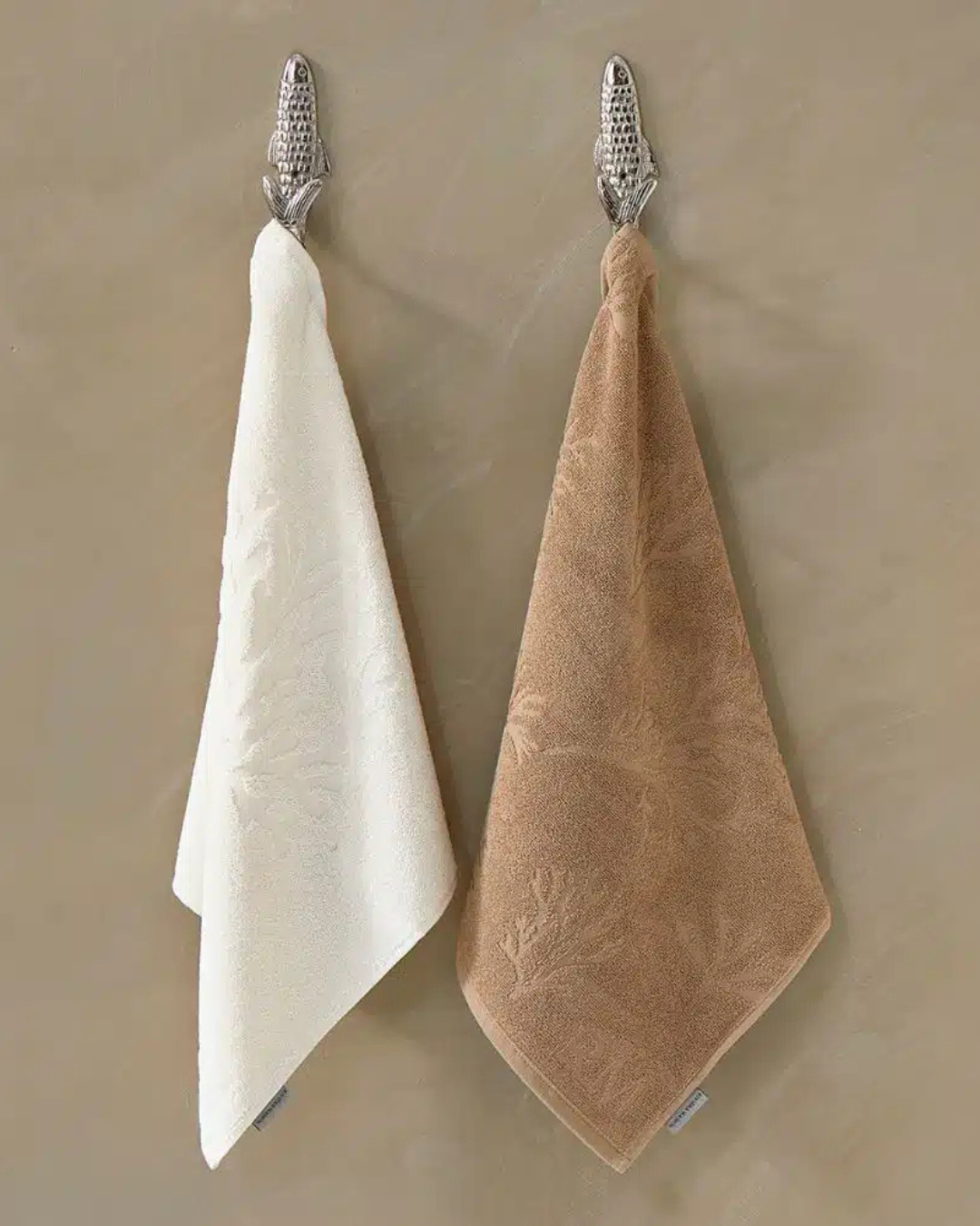 Die Coral Reef Küchenhandtücher von Rivièra Maison bringen maritime Leichtigkeit in deine Küche. Das 2er-Set besteht aus einem cremeweißen und einem sandfarbenen Handtuch, beide verziert mit einem stilvollen Korallenmuster. Ob zum Abtrocknen, Polieren oder einfach als dekoratives Detail – diese Handtücher vereinen Funktionalität und Strandhaus-Charme.