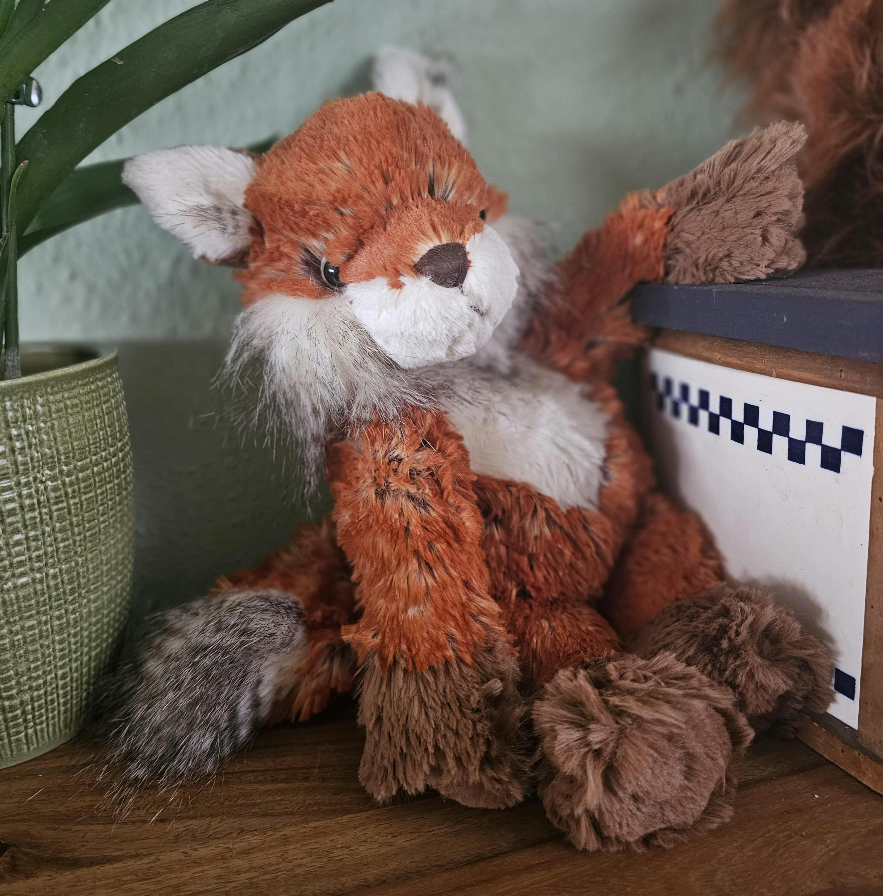 Mit seinem flauschigen Fell in warmen Rot- und Brauntönen, dem buschigen Schwanz und dem aufmerksamen Blick ist Fuchs Autumn ein echter Blickfang. Seine detailreichen Pfoten, das weiße Bäuchlein und die markante Schnauze machen ihn nicht nur unglaublich niedlich, sondern auch besonders ausdrucksstark. Ob als kuscheliger Freund, treuer Begleiter durch den Tag oder dekorativer Lieblingsfuchs auf dem Sofa – Autumn bringt Wärme, Charakter und ein bisschen Wildnis in jedes Zuhause.