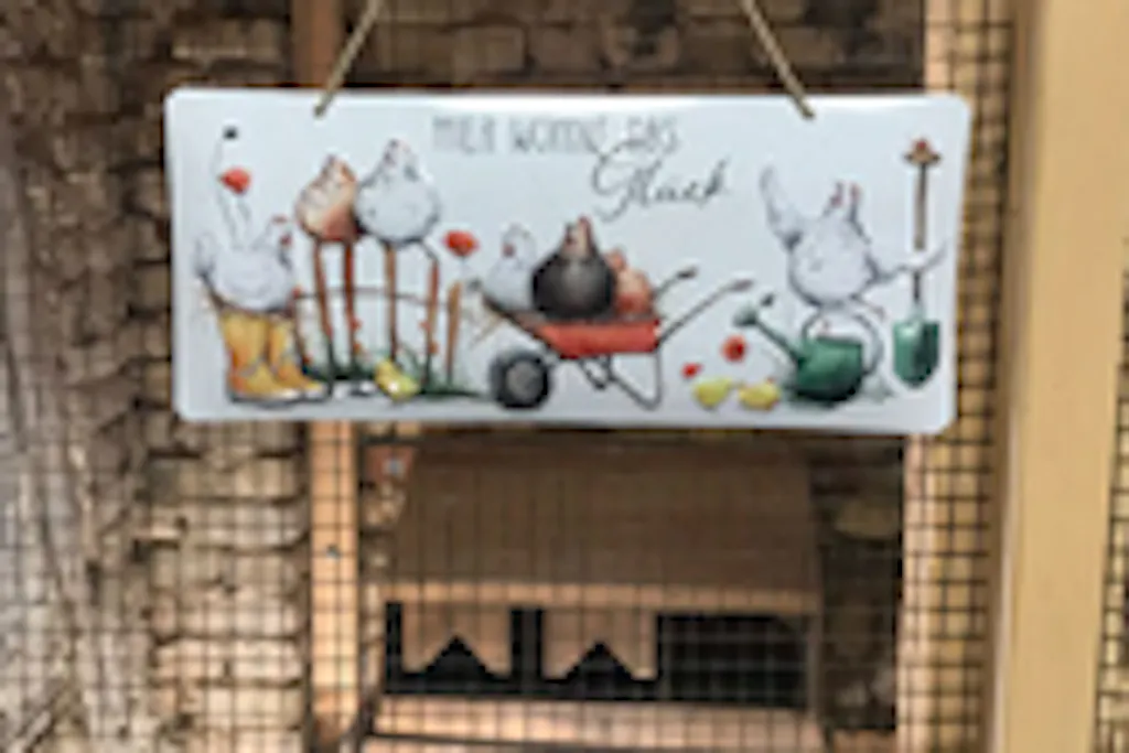 Metallschild mit Hühner-Motiv vom Grätz Verlag