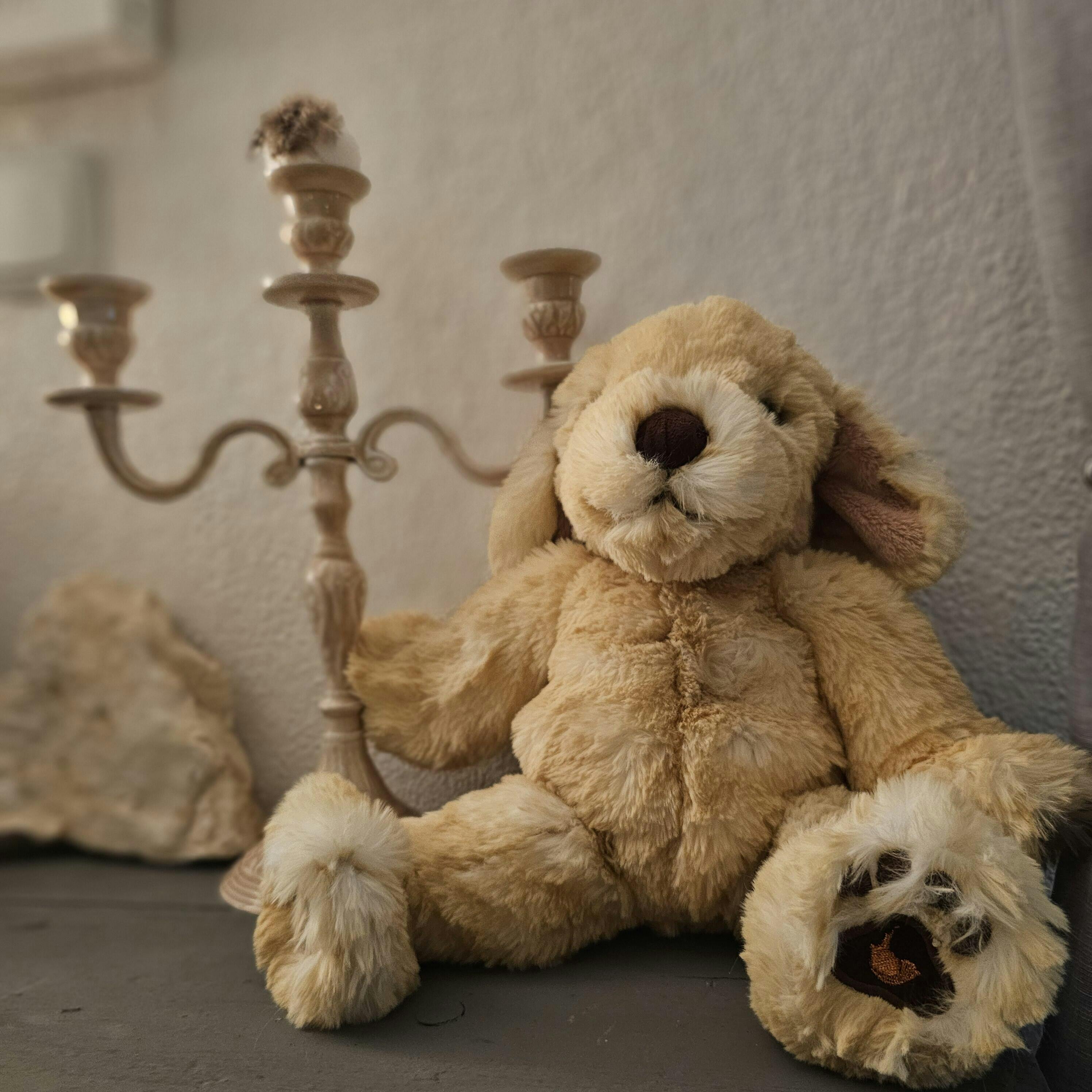Darf ich vorstellen? Das ist Ralph – ein besonders lieber Hund mit flauschigem, cremefarbenem Fell und treuem Blick. Seine langen Schlappohren, die weichen Pfoten mit gestickten Details und seine ruhige Ausstrahlung machen ihn zum idealen Kuschelfreund für gemütliche Stunden. Ralph sitzt entspannt da, als würde er geduldig auf ein paar Streicheleinheiten warten – oder auf das nächste Abenteuer im Kinderzimmer. Ob als Geschenk, Trostspender oder dekorativer Gefährte: Ralph sorgt für Herzenswärme und ein gutes Gefühl.