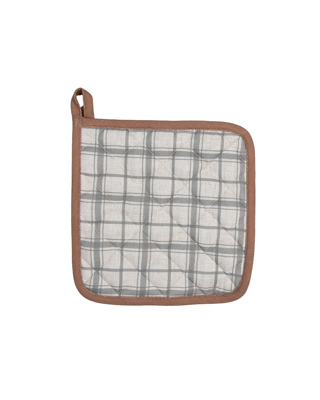 Der Topflappen besteht aus 100% Baumwolle, die Füllung aus 100% Polyester.