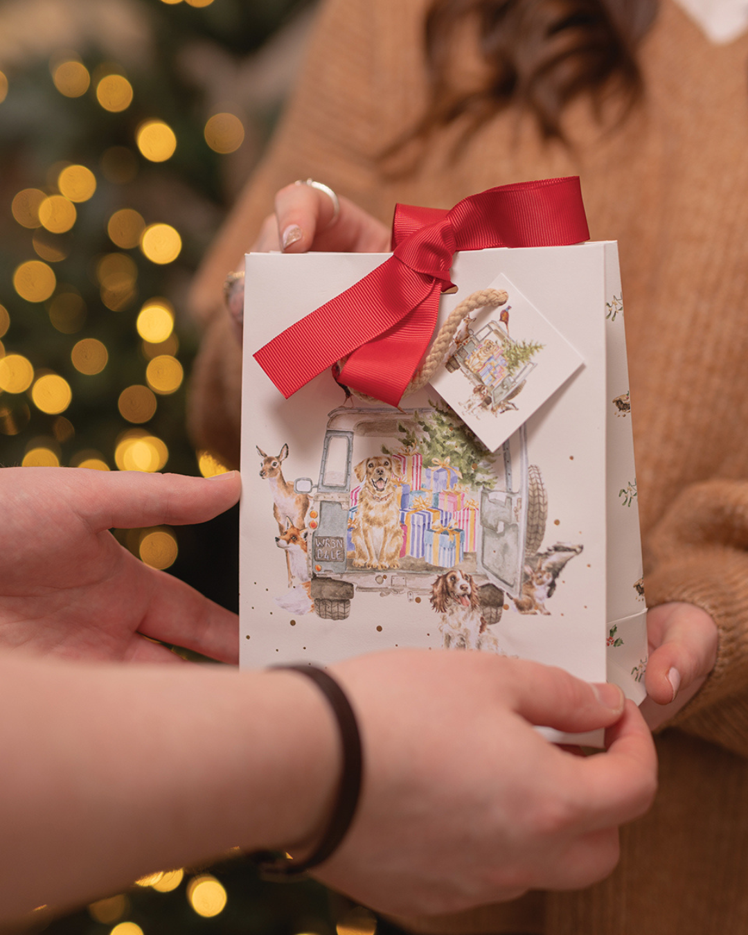 Verpacke deine Weihnachtsgeschenke stilvoll – bestelle jetzt die Geschenktasche „Driving Home for Christmas“ von Wrendale Designs.