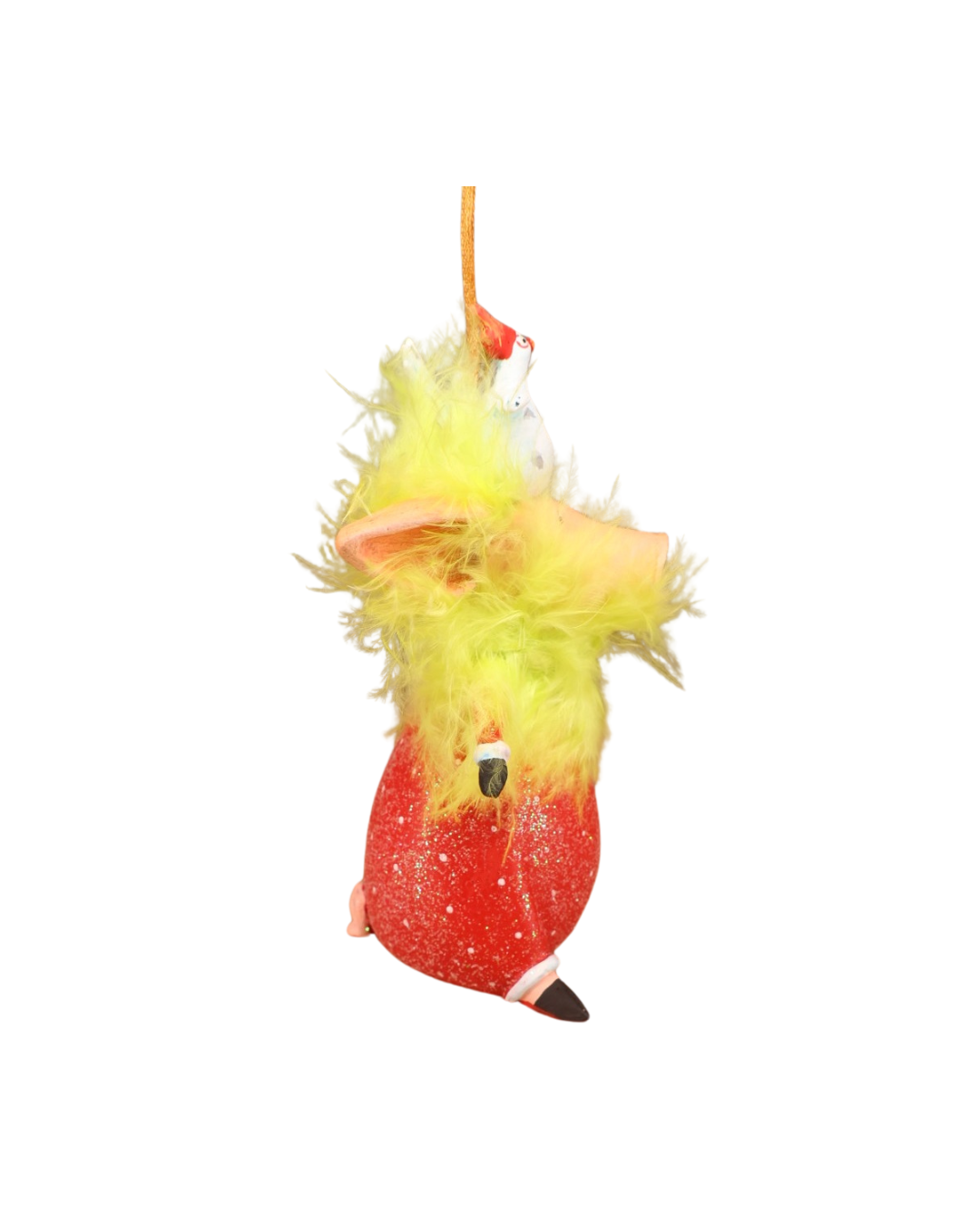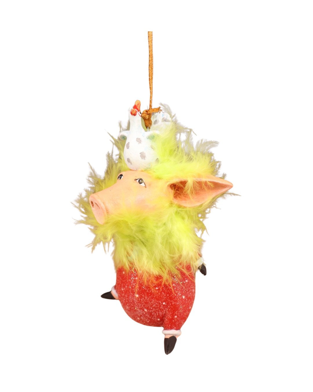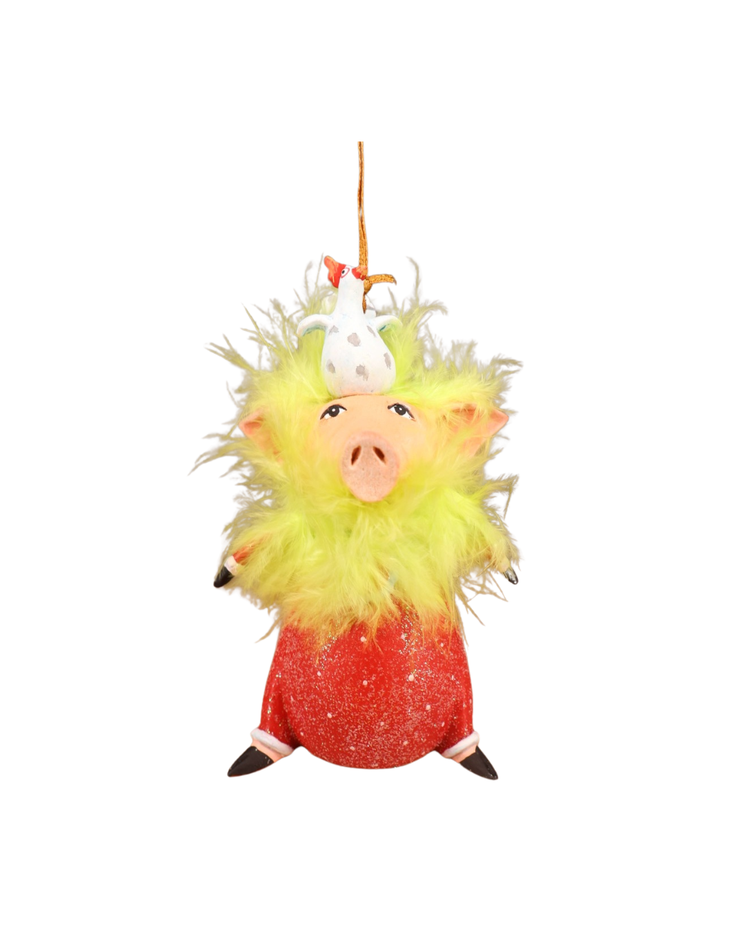 Der Schweine Krinkle „Phillis Pig“ von Patience Brewster ist ein herrlich eigenwilliges Sammlerstück voller Persönlichkeit. Mit ihrem flauschigen, leuchtend grünen Federkragen, dem roten Körper und dem kleinen Huhn auf dem Kopf ist Phillis Pig ein typisches Beispiel für den fantasievollen Krinkles-Stil. Die handbemalten Details, Glanzakzente und ungewöhnliche Kombination machen dieses Schwein zu einem echten Blickfang am Weihnachtsbaum oder in einer Sammlerinszenierung. Ein Ornament für alle, die Weihnachten mit Humor, Individualität und Liebe zum Detail feiern.