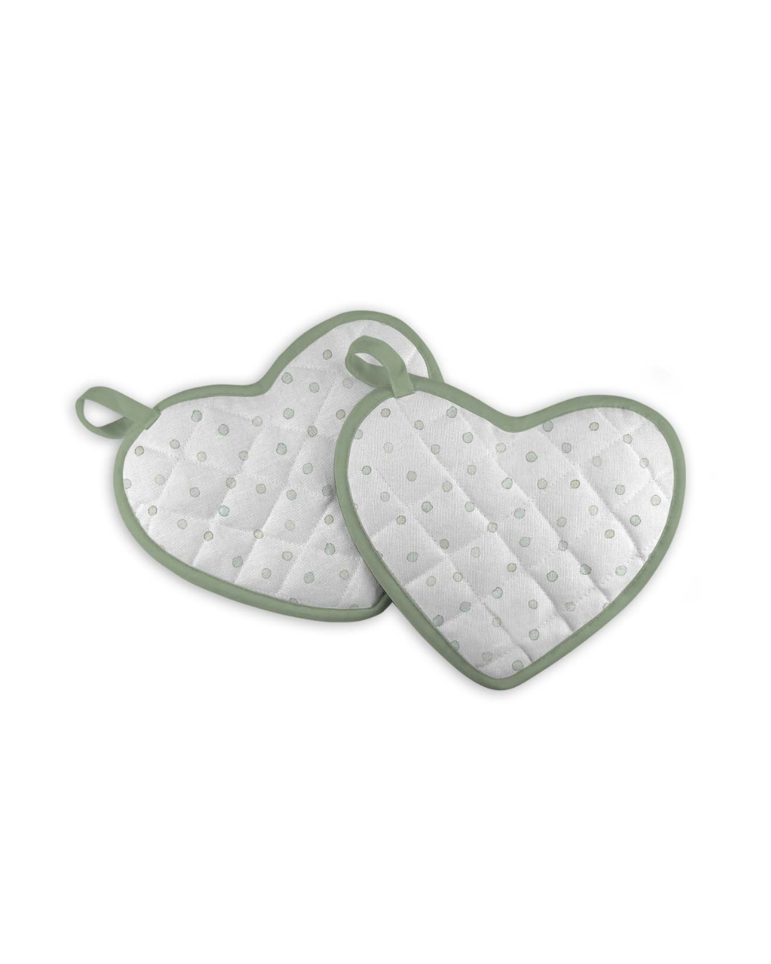 Rückseiten der Topflappen „Country Goose“ von Maluu mit hellgrünem Punktmuster