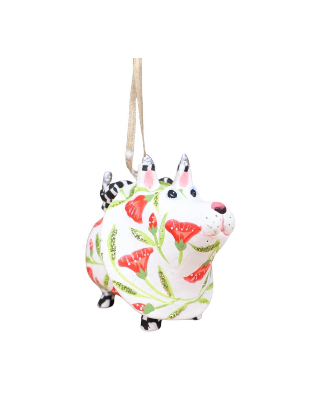Die kleine „Mini Gracie Westie Terrier“ von Patience Brewster bringt fröhliche Leichtigkeit in deine Weihnachtsdeko. Mit ihrem weißen Fell, den roten Blüten und dem spielerischen Blumenmuster versprüht sie sofort gute Laune. Die handbemalten Details, der charmante Gesichtsausdruck und die typischen Krinkles-Akzente machen sie zu einem liebevollen Sammelstück. Ob am Baum, an einem Zweig oder als kleine Überraschung im Weihnachtsteller – Gracie sorgt überall für ein Lächeln. Ein zauberhaftes Stück für Sammler*innen und Hundefans.