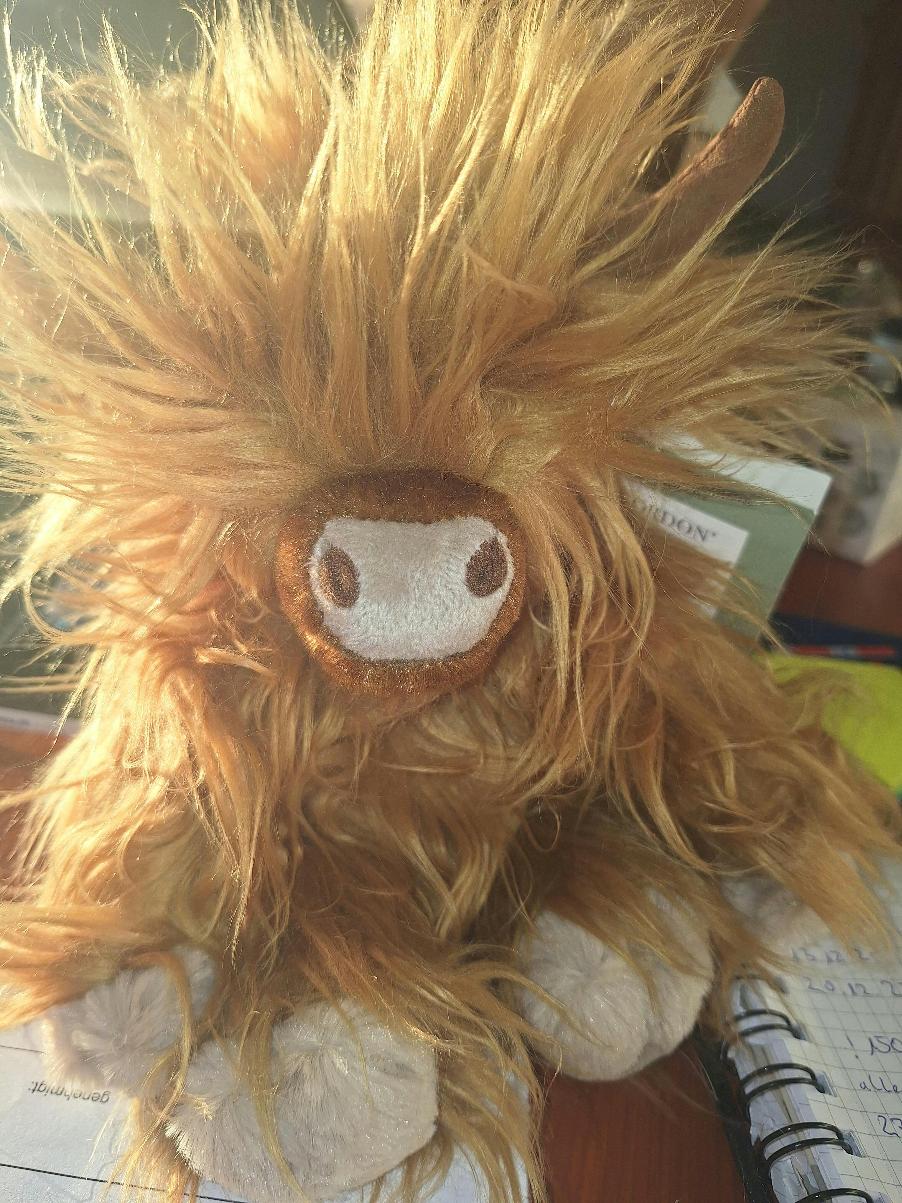 Das Gordon Hochland Rind Kuscheltier (L) von Wrendale Designs hat folgende Maße: